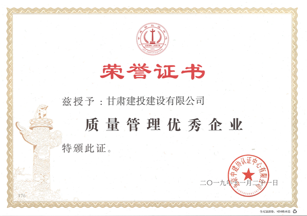 建設(shè)公司獲“質(zhì)量管理優(yōu)秀企業(yè)”榮譽(yù)稱號