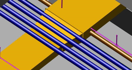 依據(jù)鋼筋施工方案,創(chuàng)建集水坑、剪力墻、梁、柱節(jié)點(diǎn)鋼筋排布BIM模型,對(duì)鋼筋排布進(jìn)行三維模擬,節(jié)省材料,翻樣準(zhǔn)確,施工方便。
