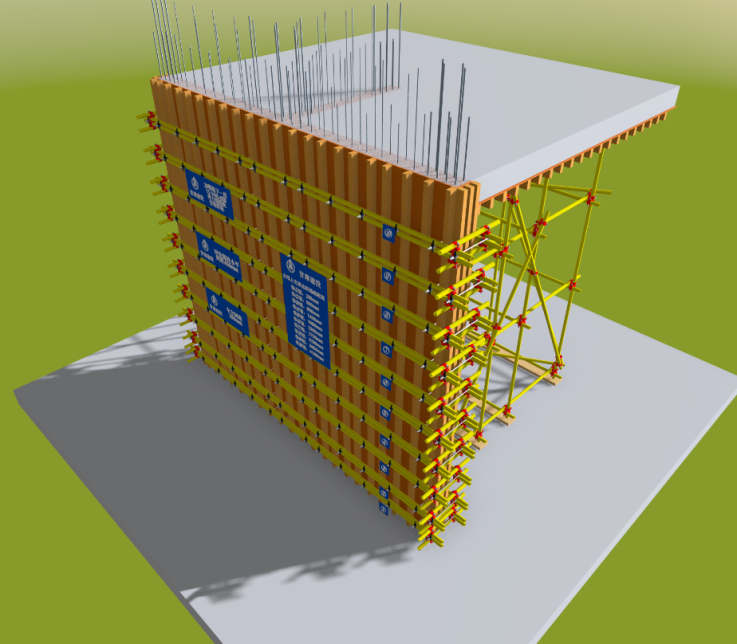剪力墻、后澆帶依據(jù)標(biāo)準(zhǔn)層及非標(biāo)準(zhǔn)層模板施工方案,創(chuàng)建剪力墻、后澆帶、柱模板安裝BIM模型,對(duì)模板安裝施工方案進(jìn)行三維模擬,優(yōu)化施工方案,輔助現(xiàn)場(chǎng)施工。