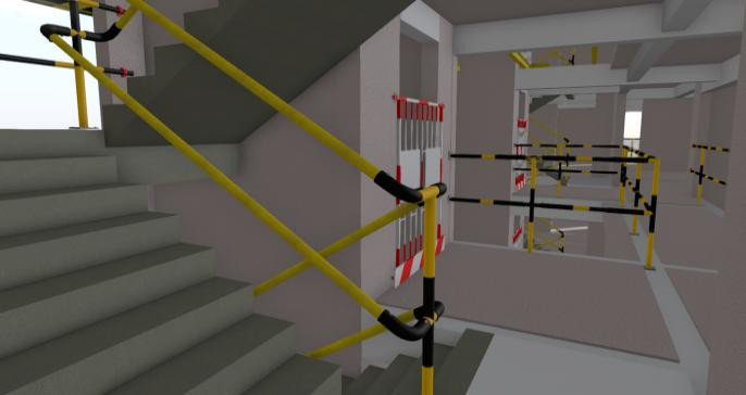 通過BIM模型預(yù)先識(shí)別標(biāo)準(zhǔn)層洞口、臨邊、設(shè)備機(jī)具等危險(xiǎn)源,提早發(fā)現(xiàn)可能存在的安全隱患,將更多的時(shí)間用于安全風(fēng)險(xiǎn)的評(píng)估與措施的制定,提前在模型中進(jìn)行安全防護(hù),將防護(hù)設(shè)施布置完善。