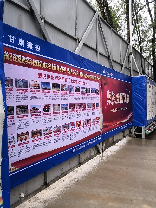 在天水上尚宅,桃李春風(fēng)康養(yǎng)小鎮(zhèn)等項目,六公司黨支部掛標(biāo)語、立展架,在項目一線營造黨史學(xué)習(xí)教育濃厚氛圍,推動黨史學(xué)習(xí)教育工作高質(zhì)量高標(biāo)準(zhǔn)開展,為項目建設(shè)匯聚強(qiáng)大的精神力量。