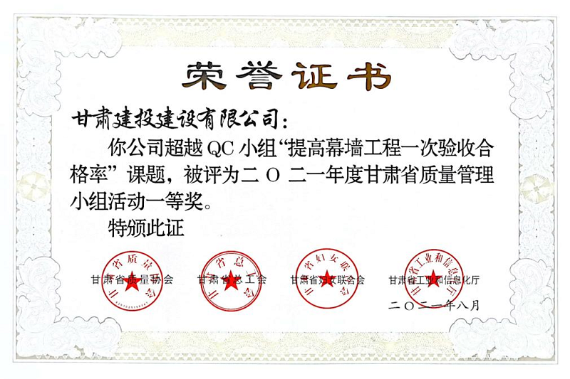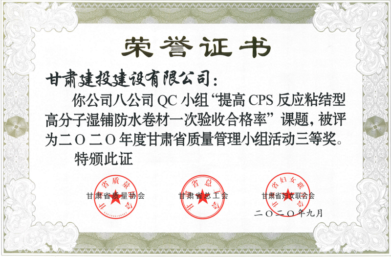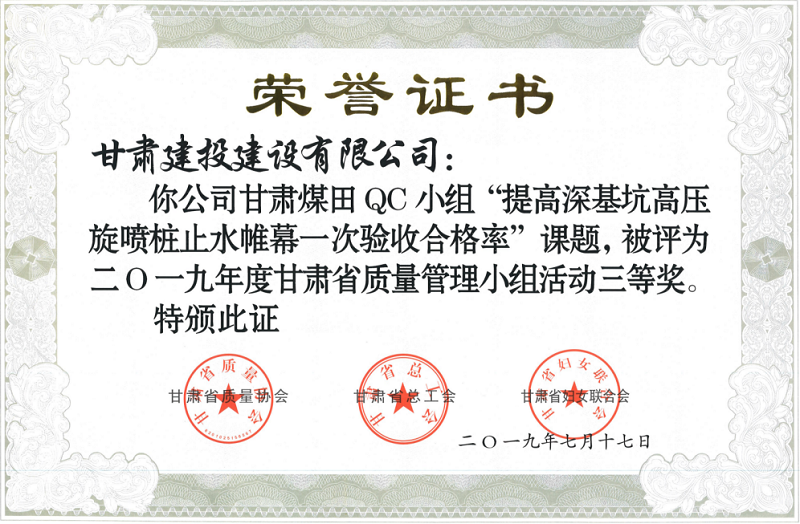 本工程獲得2020年度甘肅省建設(shè)工程文明工地,2020年度天水市文明工地,發(fā)表相關(guān)論文2篇(高壓旋噴樁止水帷幕在工程中的具體應(yīng)用、輪扣式支模架施工技術(shù)的應(yīng)用),獲甘肅省質(zhì)量協(xié)會QC活動成果3項,專利一項。