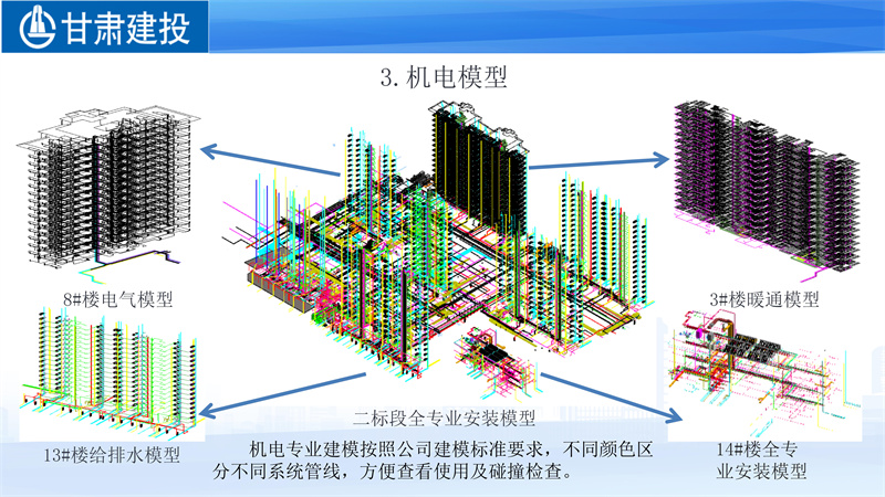 BIM落地應(yīng)用,推動(dòng)項(xiàng)目創(chuàng)優(yōu)。BIM技術(shù)應(yīng)用的落腳點(diǎn)在于為項(xiàng)目提質(zhì)創(chuàng)優(yōu)、降本增效。在建設(shè)公司應(yīng)用BIM技術(shù)的20個(gè)項(xiàng)目中,以榮獲甘肅建投第四屆BIM大賽二等獎(jiǎng)的“楓林九溪”東區(qū)F地塊項(xiàng)目二標(biāo)段工程為例。該項(xiàng)目在BIM技術(shù)應(yīng)用過程中,項(xiàng)目部積極策劃,通過三維圖紙會(huì)審、機(jī)電管線綜合排布、暗配管線優(yōu)化、綜合支吊架設(shè)計(jì)、場地三維布置等14項(xiàng)基礎(chǔ)應(yīng)用和BIM+裝配式PC構(gòu)件、BIM+裝配式機(jī)房、BIM+鋁模優(yōu)化等5項(xiàng)創(chuàng)新應(yīng)用,提高了工程施工質(zhì)量,縮短了工期,同時(shí)取得了良好的經(jīng)濟(jì)效益和社會(huì)效益。