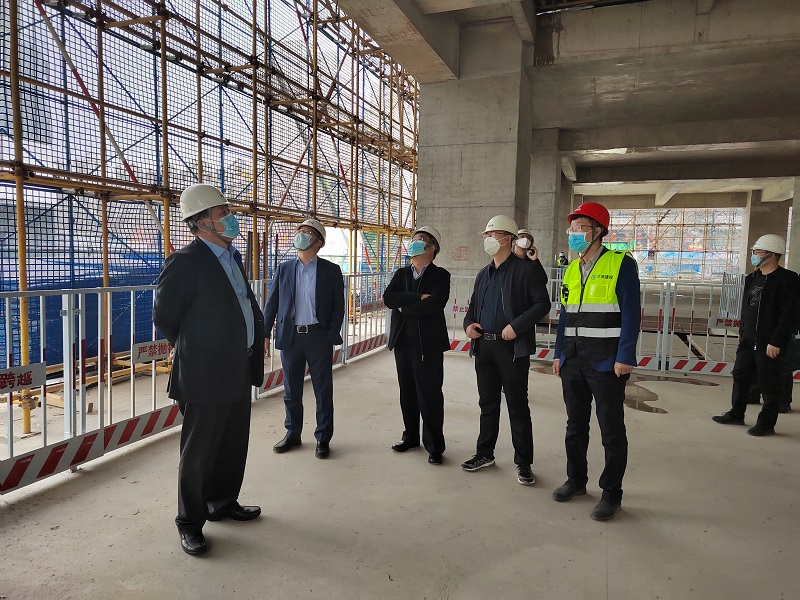 在蘭州環(huán)球中心項目,李鎖林深入施工現(xiàn)場對超高層5#樓及一期工程進行全面細致的查看。充分肯定建設公司蘭州環(huán)球中心項目的整體工作推進,并對工程的安全、質(zhì)量、信息化建設、疫情防控工作進行點評。