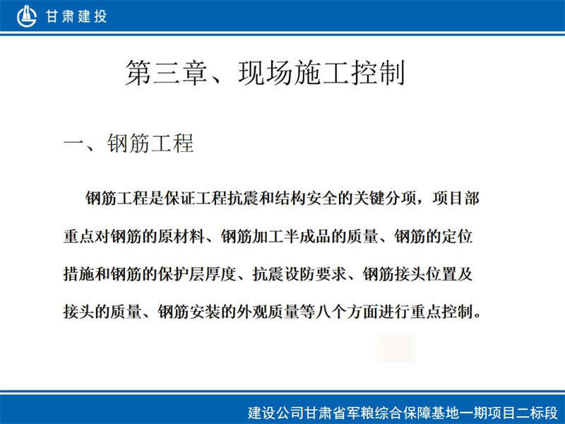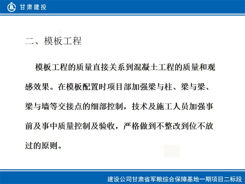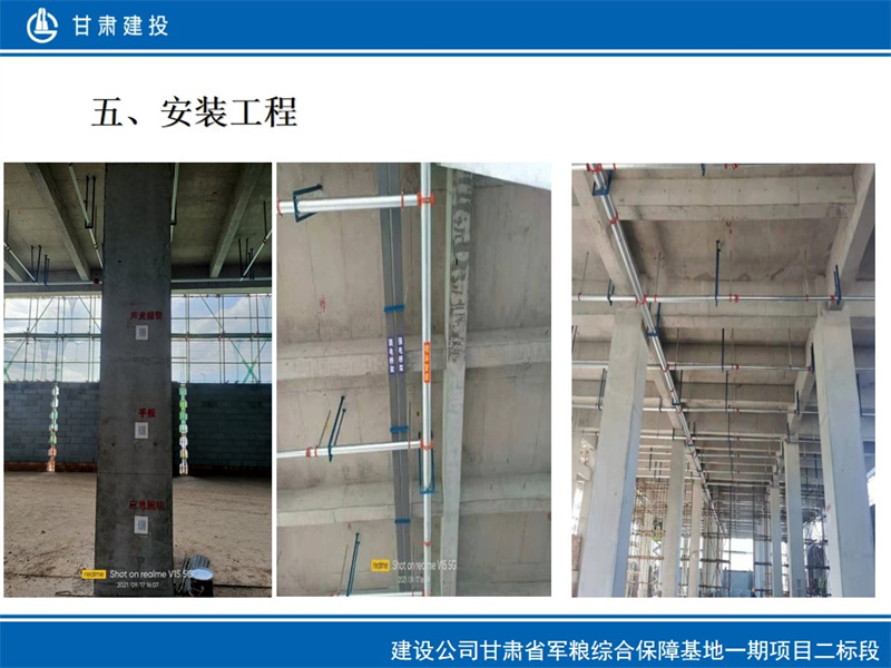 該工程位于甘肅省蘭州市榆中縣和平工業(yè)園區(qū)臥龍川產(chǎn)業(yè)園區(qū)內(nèi), 包括低溫成品庫(kù)、大米雜糧加工車(chē)間、一站式服務(wù)中心及標(biāo)準(zhǔn)化車(chē)間等6棟新建單體建筑。工程質(zhì)量管理目標(biāo)為:按照國(guó)家頒布的最新施工質(zhì)量驗(yàn)收規(guī)范執(zhí)行,達(dá)到國(guó)家驗(yàn)收“合格”標(biāo)準(zhǔn),爭(zhēng)創(chuàng) “飛天獎(jiǎng)”。項(xiàng)目工期緊、任務(wù)重,在施工工期、施工工序上有嚴(yán)格的要求,為保證人材機(jī)相互協(xié)作,公司選優(yōu)配強(qiáng)項(xiàng)目管理班子,項(xiàng)目部做好事前策劃,施工中加強(qiáng)整體調(diào)控,圓滿完成質(zhì)量及工期要求。項(xiàng)目管理團(tuán)隊(duì)在過(guò)程中嚴(yán)把工程質(zhì)量,管控施工安全,優(yōu)化施工方案,采用新工藝、新技術(shù)、新規(guī)范,在施工中嚴(yán)格執(zhí)行安全生產(chǎn)和質(zhì)量標(biāo)準(zhǔn)化管理要求,認(rèn)真落實(shí)“樣板引路”,以樣板指導(dǎo)施工。