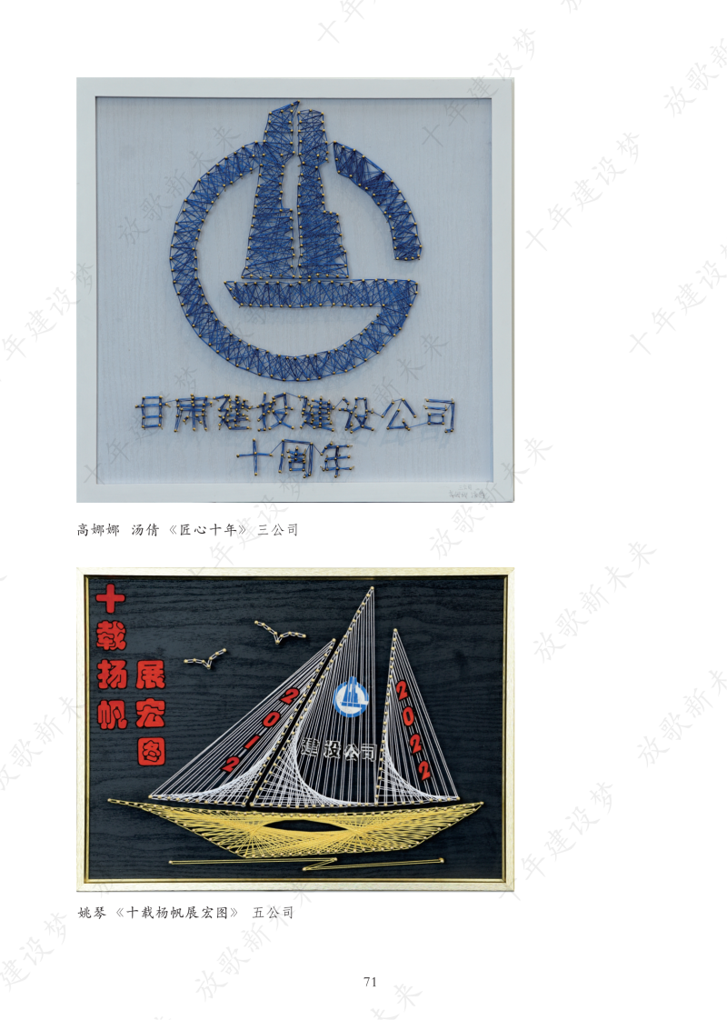 為更好聚焦企業(yè)發(fā)展變遷,深挖企業(yè)精神內(nèi)涵,引導(dǎo)全司職工從企業(yè)十年發(fā)展的歷程軌跡中汲取力量,以強烈的責任感和飽滿的精神狀態(tài)投入到各項工作中。根據(jù)公司黨委關(guān)于《慶祝建司十周年主題宣傳及系列活動實施方案》的通知要求,建設(shè)公司工會組織開展了慶祝建司十周年“征文活動”、“第二屆職工藝術(shù)作品展”等活動。此次系列活動共收到140余名職工的168件作品,包括征文、書法、油畫、國畫、攝影、十字繡、剪紙、小制作等十多個種類。最終經(jīng)過各基層工會主席評選確定入冊作品155件,其中攝影作品38件、書法作品38件,美術(shù)作品26件,手工作品17件,征文作品36篇。這些作品創(chuàng)意新穎,主題突出,內(nèi)容豐富,充分體現(xiàn)了企業(yè)精神譜系和廣大職工的精神面貌,從不同角度展示了全司廣大職工的聰明智慧和藝術(shù)才華,反映了職工們心系企業(yè)、愛崗敬業(yè)、構(gòu)建和諧社會的熾熱情懷。