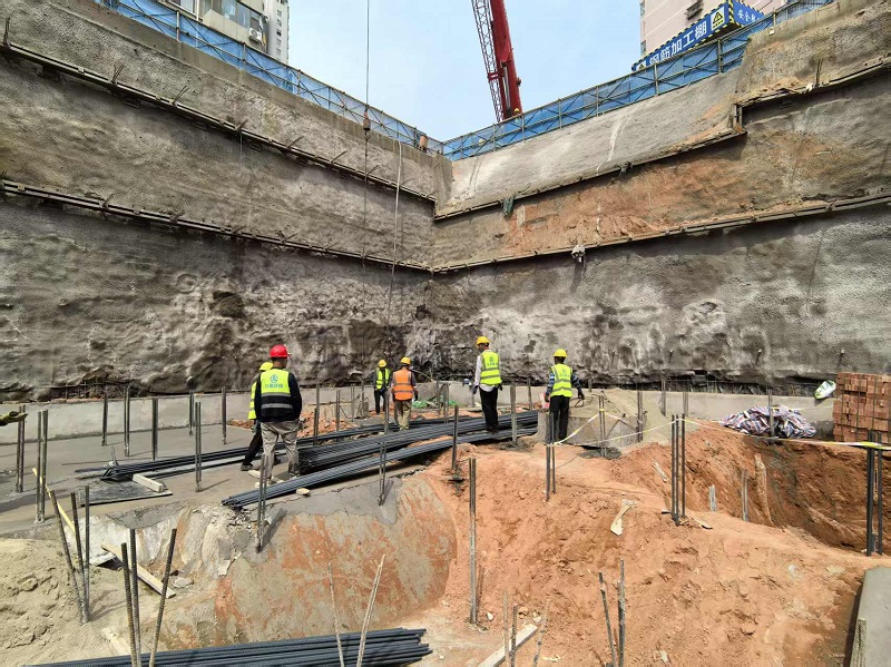 晝夜鏖戰(zhàn)善攻堅(jiān)。面對復(fù)雜地質(zhì)條件和狹小的施工場地,技術(shù)人員實(shí)時監(jiān)測鉆孔深度、注漿壓力等參數(shù),青年突擊隊(duì)以“狹路相逢勇者勝”的斗志,精心準(zhǔn)備、駐守一線、精準(zhǔn)發(fā)力,通宵進(jìn)行抗拔力檢測,以“完成一段、驗(yàn)收一段”的節(jié)奏,確保主體結(jié)構(gòu)抗浮安全萬無一失,在方寸之地闖出攻堅(jiān)新路。