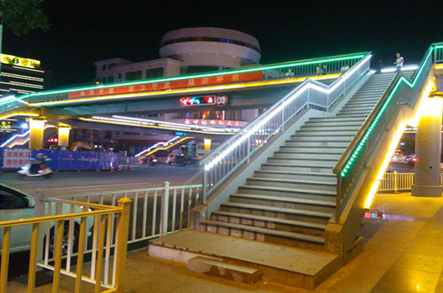 該項目是以建設公司市政二級資質中標的第一座人行天橋項目,項目位于平涼市崆峒區(qū),新民路與東西大街十字。天橋主梁和樓梯梁均采用鋼結構,主梁采用連續(xù)鋼箱梁單箱單室斷面,梁高0.9總寬4m,凈寬3.6m。采用27m+10.5m+32.5m+10m+28.07m+11.5m+30.5m+10.18m連續(xù)鋼箱梁,梯道坡度為1:2,中間設休息平臺,樓梯梁采用箱勒式鋼結構,梯道梁寬度為2.5m,高度為0.6m。主橋橋墩均采用樁柱式橋墩,立柱采用圓鋼管內灌C30微膨脹混凝土,柱徑1m,基礎采用鉆孔灌注樁,樁徑1.2m。