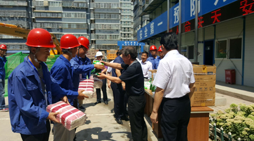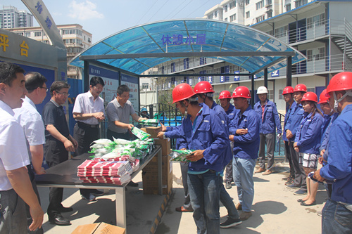 每到一個(gè)項(xiàng)目部,公司領(lǐng)導(dǎo)親手把茶葉、冰糖、綠豆、毛巾等慰問品送到職工手中,在炎炎夏日給他們送去清涼的同時(shí),也送去了公司對一線職工的關(guān)懷和問候。
