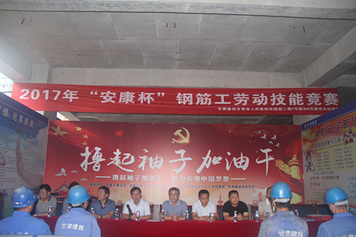 為了認真貫徹落實《關(guān)于2017年度開展全國“安康杯”競賽活動的通知》精神,大力培育業(yè)務(wù)能力強、技術(shù)素質(zhì)精的新型勞動者隊伍,7月27日,由建設(shè)公司工會主辦的2017年“安康杯”鋼筋工勞動技能競賽在甘肅省人民醫(yī)院住院部二期7#、8#樓項目部圓滿落幕。
