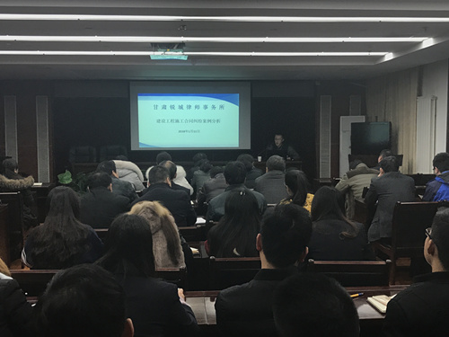 為進一步提高公司干部職工的法律知識水平和法律意識,更好的規(guī)避風(fēng)險,1月11日,建設(shè)公司邀請到甘肅銳城律師事務(wù)所的張忠義律師做了以《建設(shè)工程施工合同糾紛案例分析》為主題的法律知識培訓(xùn)。建設(shè)公司在家領(lǐng)導(dǎo)及職工共80余人參加了培訓(xùn)。
