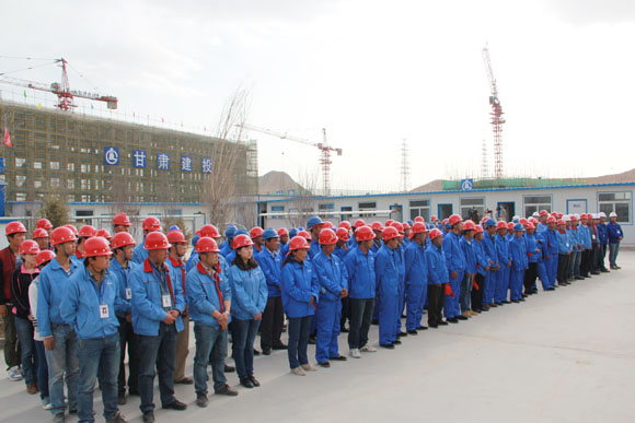 下午四點(diǎn)多,滿載新職工的大巴車終于到了目的地。五個(gè)多小時(shí)的車程,鄉(xiāng)親們絲毫沒(méi)有疲倦感。一下車,大家被塔吊林立,熱火朝天的建筑工地所吸引。經(jīng)過(guò)短暫的休整,在項(xiàng)目建設(shè)指揮部舉行了熱烈的歡迎儀式。穿戴上甘肅建投的工裝和安全帽,鄉(xiāng)親們的面貌一下發(fā)生了很大的變化。從這一刻開(kāi)始,他們終于實(shí)現(xiàn)了當(dāng)工人的愿望;也從這一刻開(kāi)始,他們成為甘肅建投工人當(dāng)中的一份子;從這里開(kāi)始,他們將展現(xiàn)才華,通向脫貧致富的大道。