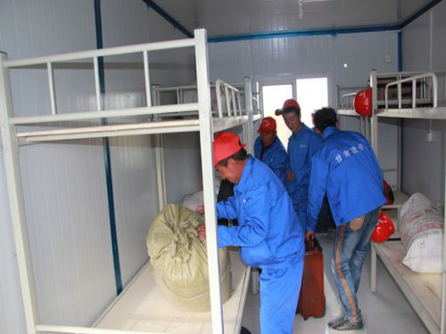 為了迎接遠(yuǎn)到而來(lái)的新職工,白銀保障房項(xiàng)目部專門準(zhǔn)備生活區(qū):兩排嶄新的彩板房,共十八間寬敞明亮的房間,可以供160人住宿。生活區(qū)內(nèi),食堂,衛(wèi)生間一應(yīng)俱全。面、清油、鍋、爐子、醬油、醋、調(diào)料……,手上的清單面面俱到??紤]到務(wù)工人員來(lái)自不同民族,項(xiàng)目部特意認(rèn)真準(zhǔn)備了清真食品……
