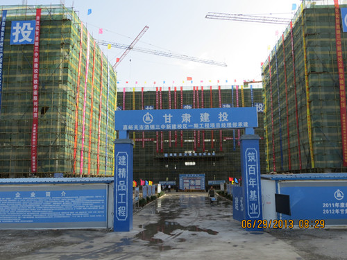 2013年6月29日,陽光明媚,整個(gè)嘉峪關(guān)市南市區(qū)都充滿了喜氣洋洋的氣氛,在這美好的日子里,嘉峪關(guān)市酒鋼三中新建校區(qū)一期工程封頂儀式隆重舉行,前來參加儀式的人中有教育局的相關(guān)領(lǐng)導(dǎo)、酒鋼三中的領(lǐng)導(dǎo)、資深老教師以及與施工密切相關(guān)的各方代表近100人見證了這個(gè)激動(dòng)人心的時(shí)刻。