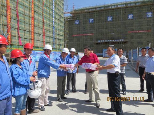 李董事長(zhǎng)一到嘉峪關(guān),顧不上一路行車的辛苦和疲累,立即趕到嘉峪關(guān)市酒鋼三中工地,一到工地,映入眼簾的是整潔的施工現(xiàn)場(chǎng),封頂儀式留下的條幅依舊鮮艷奪目,綠色的密目網(wǎng)和黃色的腳手架相映成輝,工地上,李董事長(zhǎng)首先對(duì)現(xiàn)場(chǎng)施工人員進(jìn)行了慰問(wèn),發(fā)放了慰問(wèn)品,并聽(tīng)取了建設(shè)公司三公司領(lǐng)導(dǎo)的簡(jiǎn)短匯報(bào),饒有興致的查看了隔震墊施工的技術(shù)成果,并詳細(xì)了解了隔震墊的施工工藝,在樓層上,肯定了框架的施工質(zhì)量,也提出了施工方面的不足與改進(jìn)的地方,緊接著對(duì)建設(shè)公司三公司在嘉峪關(guān)所屬項(xiàng)目逐個(gè)進(jìn)行了檢查指導(dǎo)。