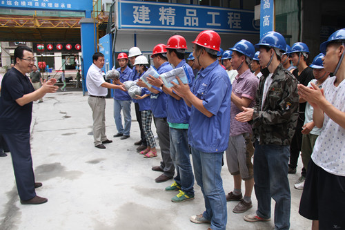 在放完慰問品后,李董事長親切地詢問了工程的進度情況,并對項目在建情況進行了實地檢查,聽到甘肅建投3#綜合樓已申報國家AAA級誠信化標準工地時,他說:一定要有重視、抓落實,現(xiàn)場的實際情況較國家AAA級誠信標準化工地的評比標準還有些差距,在今后的工作中還需繼續(xù)努力,力爭取得榮譽。