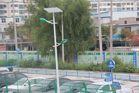 兩盞矗立在工地上的太陽能路燈格外引人矚目,既保證了照明,節(jié)省了電能,還美化了環(huán)境。據(jù)測算,如采用相同瓦數(shù)碘鎢燈,施工期內僅電費就超過了兩盞燈的價錢。
