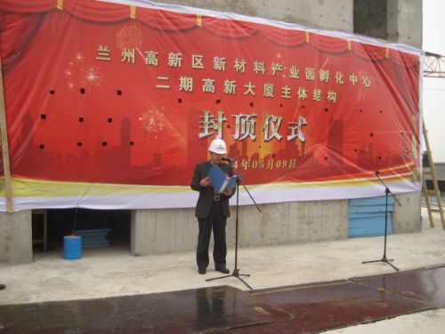上午10:58分時許,前來參加封頂儀式的有關(guān)領(lǐng)導(dǎo)沿著紅地毯緩緩步入會場,儀式在歡快的音樂聲中正式開始,蘭州普禾醫(yī)藥有限公司總經(jīng)理郝清風(fēng)致開幕詞,甘肅建投總公司黨委書記張國虎作了致辭。在談到項目建設(shè)時,他說,甘肅建投公司以造“一流工程、精品工程”為己任,秉著“銳意進(jìn)取、追求卓越”的企業(yè)精神,贏得了效益和口碑雙豐收。同時,對于此次高新大廈辦公樓的順利封頂,建設(shè)單位高度肯定了我項目部的傾力支持和無私奉獻(xiàn),并且表達(dá)了希望雙方加強(qiáng)后續(xù)合作,共生共榮。