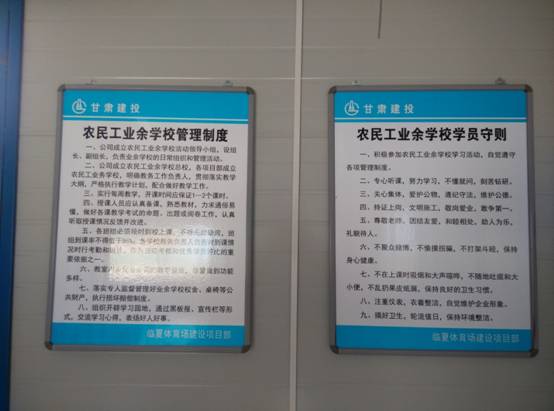 一公司臨夏體育場項(xiàng)目部開辦農(nóng)民工業(yè)余學(xué)校