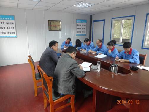 2014年9月12日,建設(shè)公司副總經(jīng)理?xiàng)钊曩t一行檢查指導(dǎo)保溫材料公司工作,并組織全體管理人員召開會(huì)議,此次會(huì)議主題為保溫公司上半年生產(chǎn)、經(jīng)營(yíng)及回款情況。