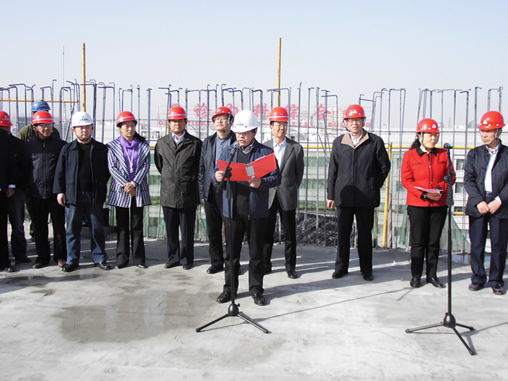 彩旗招展,爆竹聲聲。封頂儀式上,酒泉市建設(shè)局、酒泉市人民醫(yī)院、甘肅藍(lán)野建設(shè)監(jiān)理有限公司等主要領(lǐng)導(dǎo),以及建設(shè)公司黨委書記、紀(jì)委書記張國虎、五公司經(jīng)理薛建才和項(xiàng)目部參建人員近70人參加了封頂儀式,共同見證了這一輝煌的時(shí)刻。建設(shè)公司張書記代表施工方發(fā)表了講話,指出:今天的封頂既是工程建設(shè)的一個(gè)里程碑,更是搞好后期建設(shè)的一個(gè)新起點(diǎn),后期的裝飾裝修、工程安裝等施工任務(wù)還很繁重和艱巨。為此,我們要求項(xiàng)目部的全體施工人員,以“建精品工程,筑百年基業(yè)”為根本,以創(chuàng)優(yōu)質(zhì)工程為目標(biāo),繼續(xù)努力,為業(yè)主交上一份滿意的答卷,向酒泉市的醫(yī)療衛(wèi)生事業(yè)做出我們應(yīng)有的貢獻(xiàn)。