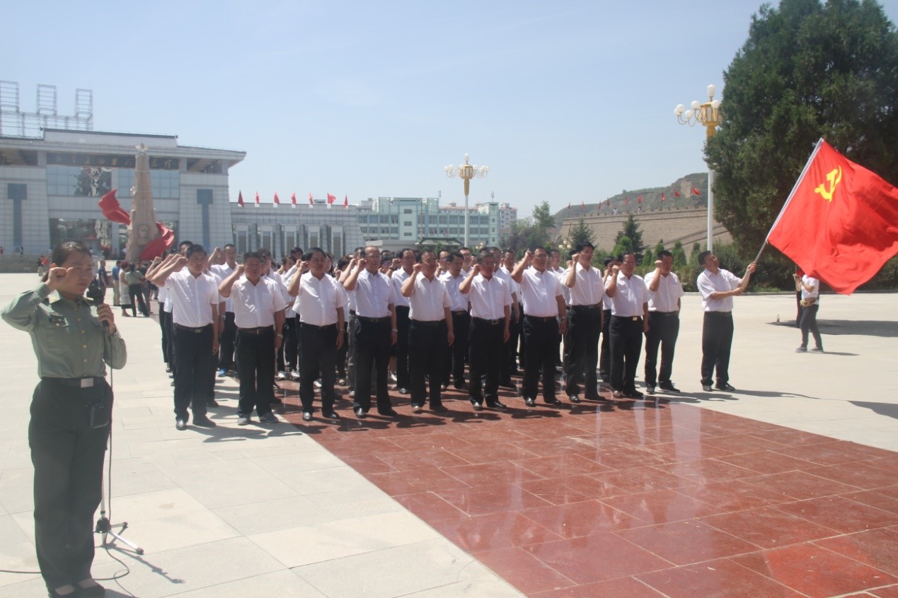 當(dāng)天上午,參會人員來到紅軍長征會師之地會寧縣,在會師樓前向革命英烈敬獻花籃并鞠躬致敬,隨后新入黨的共產(chǎn)黨員與老黨員一起在會師樓下,重溫了入黨誓詞,聆聽了關(guān)于中國工農(nóng)紅軍一、二、四方面軍在會寧會師的相關(guān)歷史情況和關(guān)于紅軍長征精神的主題講解、參觀了紅軍長征會師紀(jì)念館。