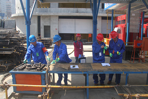 比賽依據(jù)鋼筋工國家職業(yè)資格標準(高級工),實行理論知識考試和實際操作考核,理論知識占考試總分30%,實際操作考核占總分70%,總分為100分。理論考試在《中華人民共和國住建部職業(yè)技能標準鋼筋工(技師、高級技師)》的命題范圍內(nèi),內(nèi)容包括建筑材料、建筑識圖、操作工藝、質(zhì)量驗收規(guī)范及安全知識等;實操考核包括鋼筋配料和鋼筋綁扎。
