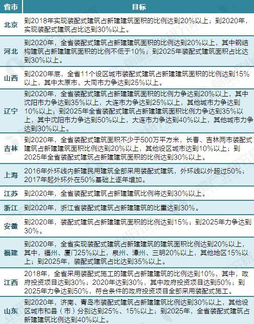 2017年3月23日,住房和城鄉(xiāng)建設部印發(fā)《“十三五”裝配式建筑行動方案》、《裝配式建筑示范城市管理辦法》、《裝配式建筑產(chǎn)業(yè)基地管理辦法》,《行動方案》明確提出:到2020年,全國裝配式建筑占新建建筑的比例達到15%以上,其中重點推進地區(qū)達到20%以上,積極推進地區(qū)達到15%以上,鼓勵推進地區(qū)達到10%以上。