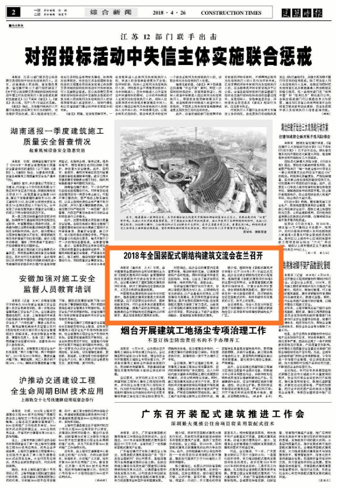 建筑時報:2018年全國裝配式鋼結構建筑交流大會在蘭召開