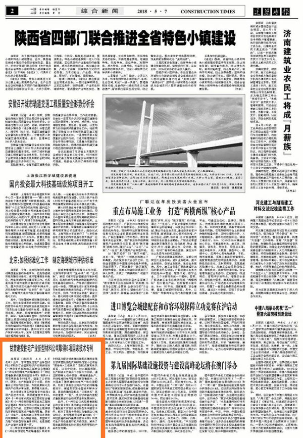 建筑時報:甘肅建投住宅產(chǎn)業(yè)新型材料公司取得6項國家技術(shù)專利