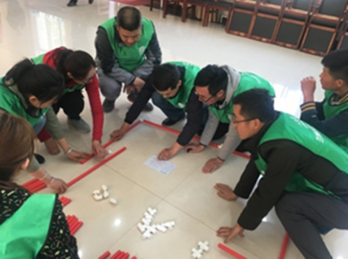 隨后,大家在興隆山拓展訓(xùn)練營開展了豐富多彩的素質(zhì)拓展訓(xùn)練活動(dòng)。大家熱情高漲,全情投入的為自己的團(tuán)隊(duì)出謀劃策,起隊(duì)名、選隊(duì)長、定隊(duì)歌、設(shè)隊(duì)徽,通過“鼓動(dòng)人心、目標(biāo)市場、漢諾塔、趾壓板”等拓展項(xiàng)目,使大家加深了同事之間的溝通聯(lián)系,增強(qiáng)了團(tuán)隊(duì)的凝聚力,提升了團(tuán)結(jié)協(xié)作意識。特別是在“呼吸的力量”環(huán)節(jié)中,大家相互溝通、團(tuán)結(jié)協(xié)作,通過看圖識圖,進(jìn)行前期策劃分工,明確責(zé)任,過程管理,充分發(fā)揮了建筑人的特長。