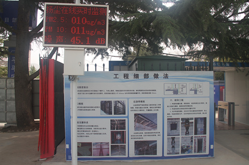 該工程施工過程中,項目部貫徹“以資源的高效利用為核心,以環(huán)保為優(yōu)先”的指導(dǎo)方針,為滿足綠色施工需要,項目部在施工現(xiàn)場安裝了視頻監(jiān)控系統(tǒng),揚(yáng)塵在線監(jiān)測系統(tǒng),基坑臨邊防護(hù)上設(shè)置噴霧降塵系統(tǒng),大門口設(shè)置洗車臺,對進(jìn)出車輛進(jìn)行沖洗,防止將泥帶出工地,現(xiàn)場非硬化地面實施抑塵劑噴涂固化和防塵網(wǎng)覆蓋,有效降低了土方施工對周邊環(huán)境的揚(yáng)塵污染。同時在基坑上部設(shè)置了地下水回收利用裝置,實時將地下降水抽出并經(jīng)沉淀處理的地下水,收集的雨水等水資源源源不斷地經(jīng)變頻設(shè)備打至用水點,大大提高了水資源的二次利用效率。在保證質(zhì)量、安全的前提下,通過科學(xué)管理和技術(shù)進(jìn)步,最大限度的節(jié)約資源和減少對環(huán)境負(fù)面影響的施工活動,確保實現(xiàn)四節(jié)一環(huán)保的目標(biāo)。