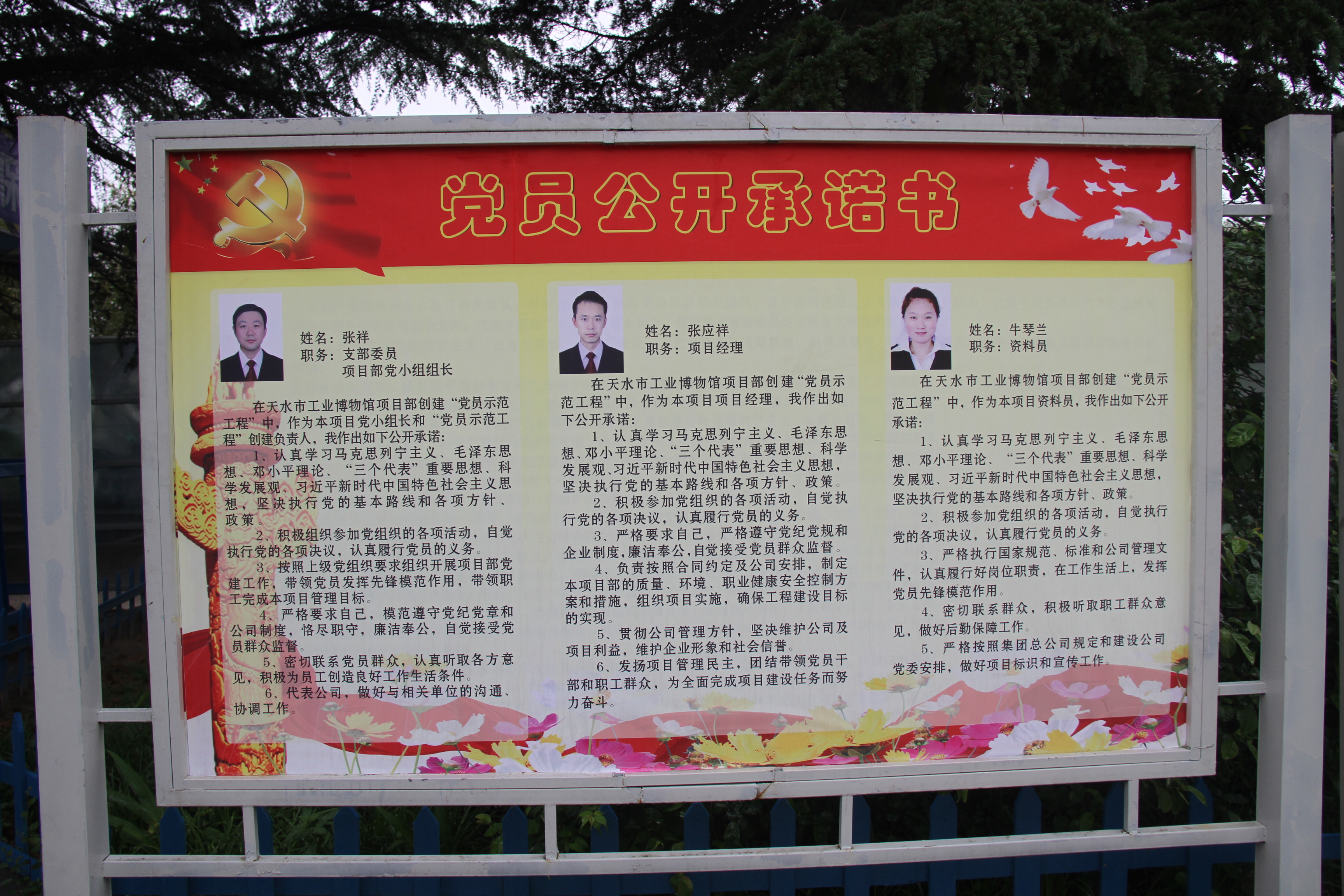 張國虎代表公司黨委向項(xiàng)目部授牌并做了重要講話,他指出,八公司天水市工業(yè)博物館項(xiàng)目自開工以來,嚴(yán)格貫徹執(zhí)行國家有關(guān)安全生產(chǎn)和技術(shù)質(zhì)量法律法規(guī)及相關(guān)規(guī)定,積極貫徹落實(shí)公司黨委有關(guān)加強(qiáng)項(xiàng)目黨建的工作要求,不斷健全完善項(xiàng)目部學(xué)習(xí)培訓(xùn)、安全質(zhì)量管理等制度,強(qiáng)化質(zhì)量控制、進(jìn)度控制和成本控制,重視安全文明施工,不斷創(chuàng)新職工活動(dòng)載體,規(guī)范項(xiàng)目黨員組織生活,在培養(yǎng)技術(shù)能手和管理能手上成效明顯,項(xiàng)目黨員的先鋒模范作用在工程建設(shè)全過程中有效發(fā)揮。