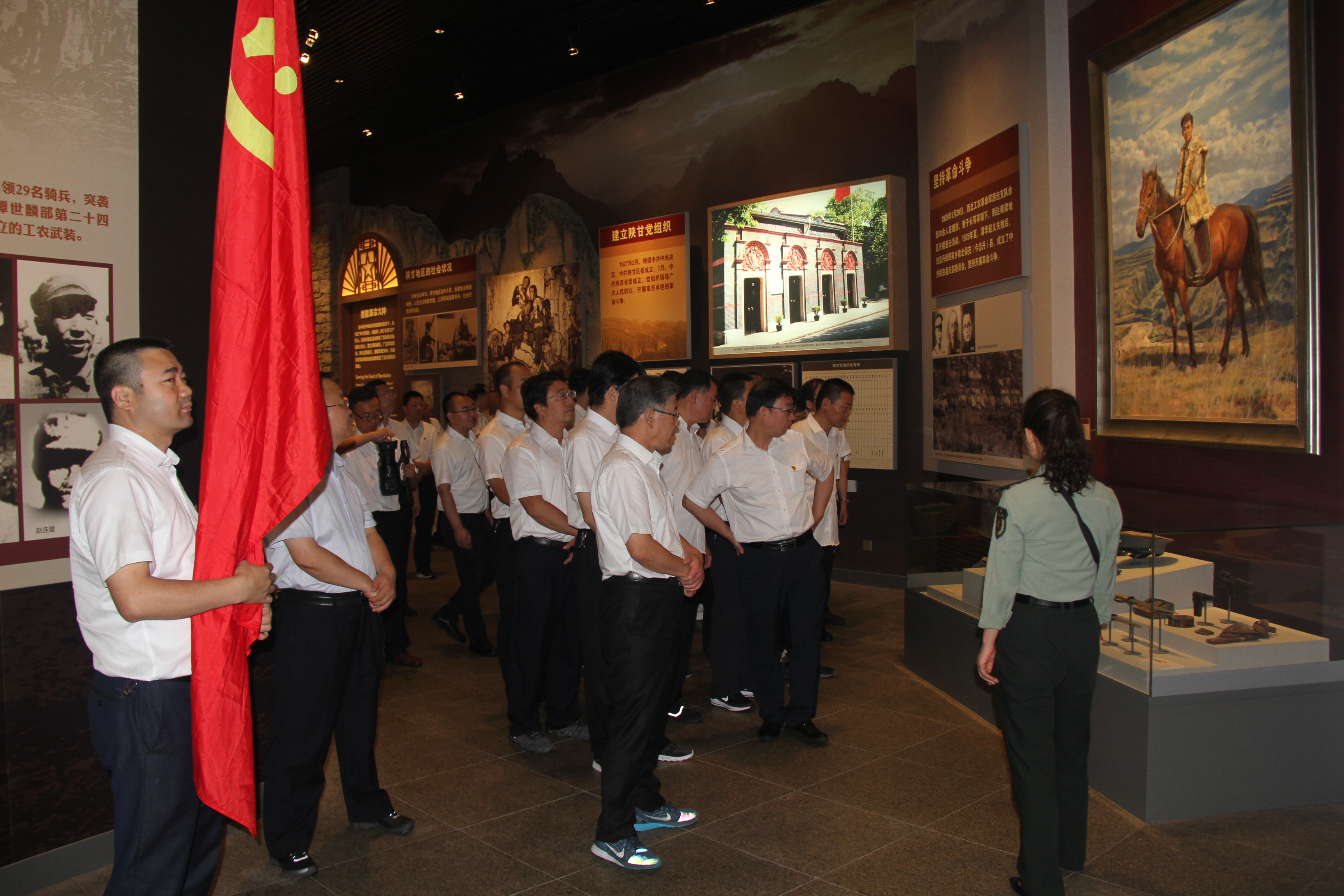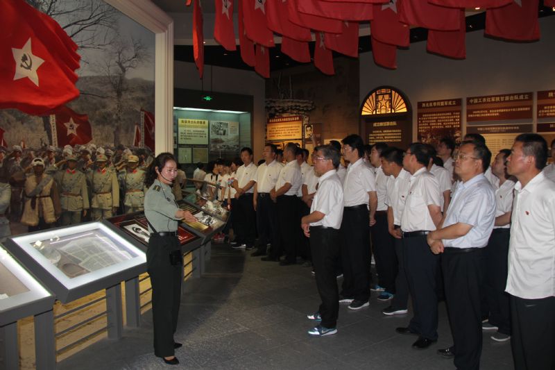 7月8日,全體黨員來到了位于慶陽市華池縣南梁鎮(zhèn)荔園堡村、原陜甘邊蘇維埃政府所在地的南梁革命紀念館進行參觀學習。該館是為了紀念20世紀30年代初劉志丹、謝子長、習仲勛等無產(chǎn)階級革命家開展游擊活動、在此建立陜甘邊區(qū)蘇維埃政府而修建的。在南梁革命烈士紀念碑前,全體黨員莊嚴肅立,共同向革命烈士默哀致敬,并敬獻了花籃。在南梁革命紀念館內(nèi)大家跟隨者講解員的腳步,共同回顧了陜甘邊區(qū)革斗爭史的文字、繪畫、圖片和實物,了解了劉志丹、謝子長、習仲勛等老一輩革命家在陜甘邊區(qū)開展游擊活動并在此建立蘇維埃政府的革命歷程。在館內(nèi)播放的主題宣傳片《夢起南梁》則讓大家更加深刻感受到在創(chuàng)建陜甘邊紅色政權(quán)的偉大實踐中,老一輩革命家百折不撓的斗志,堅定無比的信念意志,也同時學習到了南梁革命“求實創(chuàng)新、敢為人先;心系群眾、艱苦奮斗;百折不撓、信念堅定”的豐富精神內(nèi)涵。在此次參觀學習結(jié)束之前,全體黨員在講解員的帶領下集體合唱了《繡金匾》、《軍民大生產(chǎn)》等隴東民歌,點燃了大家追憶革命歷史,緬懷革命先輩,傳承發(fā)揚革命精神的熱情,將此次紅色教育主題黨日活動推向了高潮。