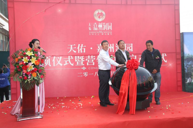 封頂儀式最后,芮劍鋒與甘肅天健實業(yè)有限公司董事長楊君才、蘭州濱河監(jiān)理有限責任公司總監(jiān)理工程師封維全共同按下啟動球,標志著天佑•嘉州潤園項目隆重開盤。