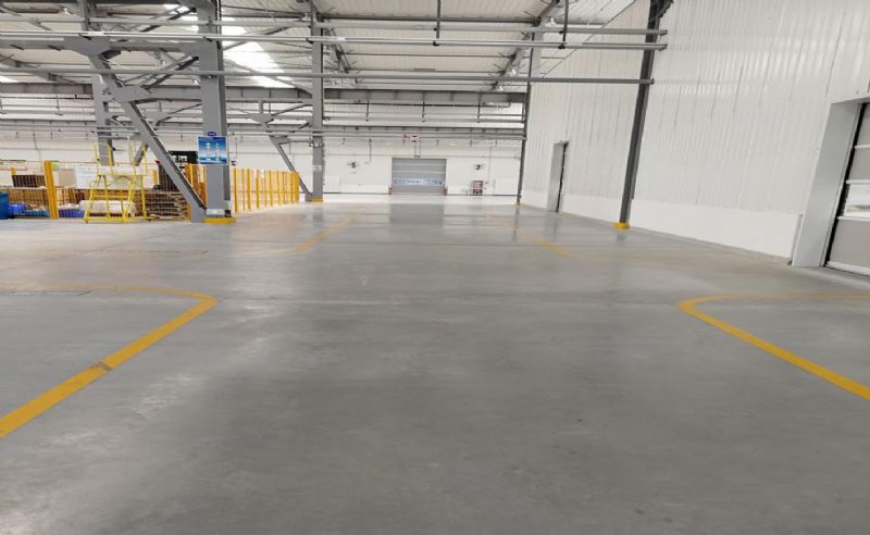 該工程中應用了鋼纖維混凝土,通過在混凝土中摻入一定數(shù)量的鋼纖維,提高了混凝土的抗壓、抗拉、抗彎,抗裂及抗疲勞、韌性等性能。面層耐磨粉與混凝土整體凝固而成,其中摻入的骨料硬度極高,有效提高地坪的耐磨、抗沖擊、抗壓性能,延長了地坪使用壽命。