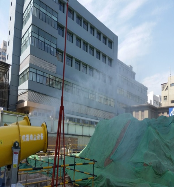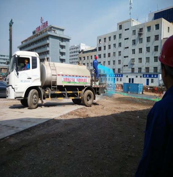現(xiàn)場辦公室、現(xiàn)場圍墻、基坑四周、主體結(jié)構(gòu)防護(hù)欄桿等設(shè)施實(shí)施占地面積小,組裝、拆除靈活、方便,回收利用率高,具有可觀的經(jīng)濟(jì)、環(huán)境和社會(huì)效益。項(xiàng)目部在土方開挖階段,嚴(yán)格按照市委市政府大氣治理相關(guān)文件要求,積極落實(shí)各項(xiàng)治污防塵措施,編制“施工現(xiàn)場揚(yáng)塵治污方案”,依照方案實(shí)施并根據(jù)揚(yáng)塵監(jiān)測數(shù)據(jù)不斷改進(jìn),有效降低了土方施工對醫(yī)院及周邊環(huán)境的揚(yáng)塵污染,切實(shí)達(dá)到了市委市政府要求的“6個(gè)100%”,確保了本工地防塵治污達(dá)到要求,受到各方一致好評,被蘭州市“蘭州藍(lán)”宣傳片選做樣板工地。