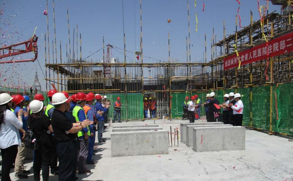 在封頂儀式上,張國虎發(fā)表了致辭講話,他首先對省人民醫(yī)院住院部二期項目部7#樓主體順利封頂表示衷心的祝賀,并對在項目一線辛勤工作的全體職工表示感謝,他指出該工程自開工以來,該項目集醫(yī)療、應急救援、人防、停車、辦公為一體的大型公益性建筑,被列為省重點工程。不論從結構復雜程度、施工難度,還是投資、建筑規(guī)模、社會影響等方面,建成后定屬全省又一標志性工程。