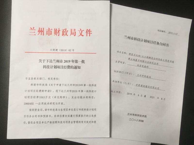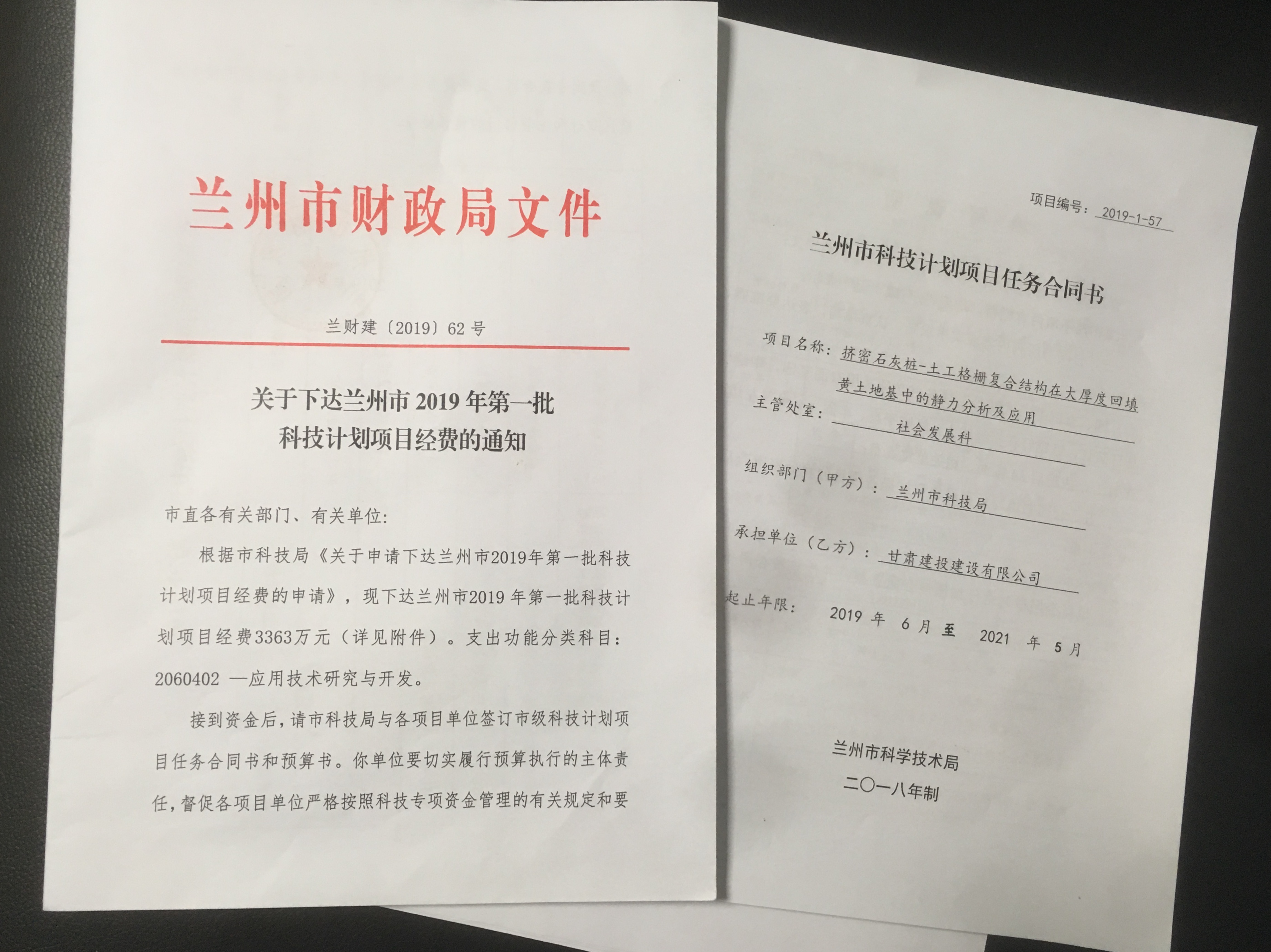 近日,蘭州市2019年度第一批市級(jí)科技計(jì)劃項(xiàng)目的立項(xiàng)結(jié)果已經(jīng)公布,由建設(shè)公司申報(bào)的蘭州市科技局科研項(xiàng)目《擠密石灰樁-土工格柵復(fù)合結(jié)構(gòu)在大厚度回填黃土地基中的靜力分析及應(yīng)用》正式批準(zhǔn)立項(xiàng),同時(shí)獲得蘭州市科技局科研經(jīng)費(fèi)支持20萬(wàn)元。