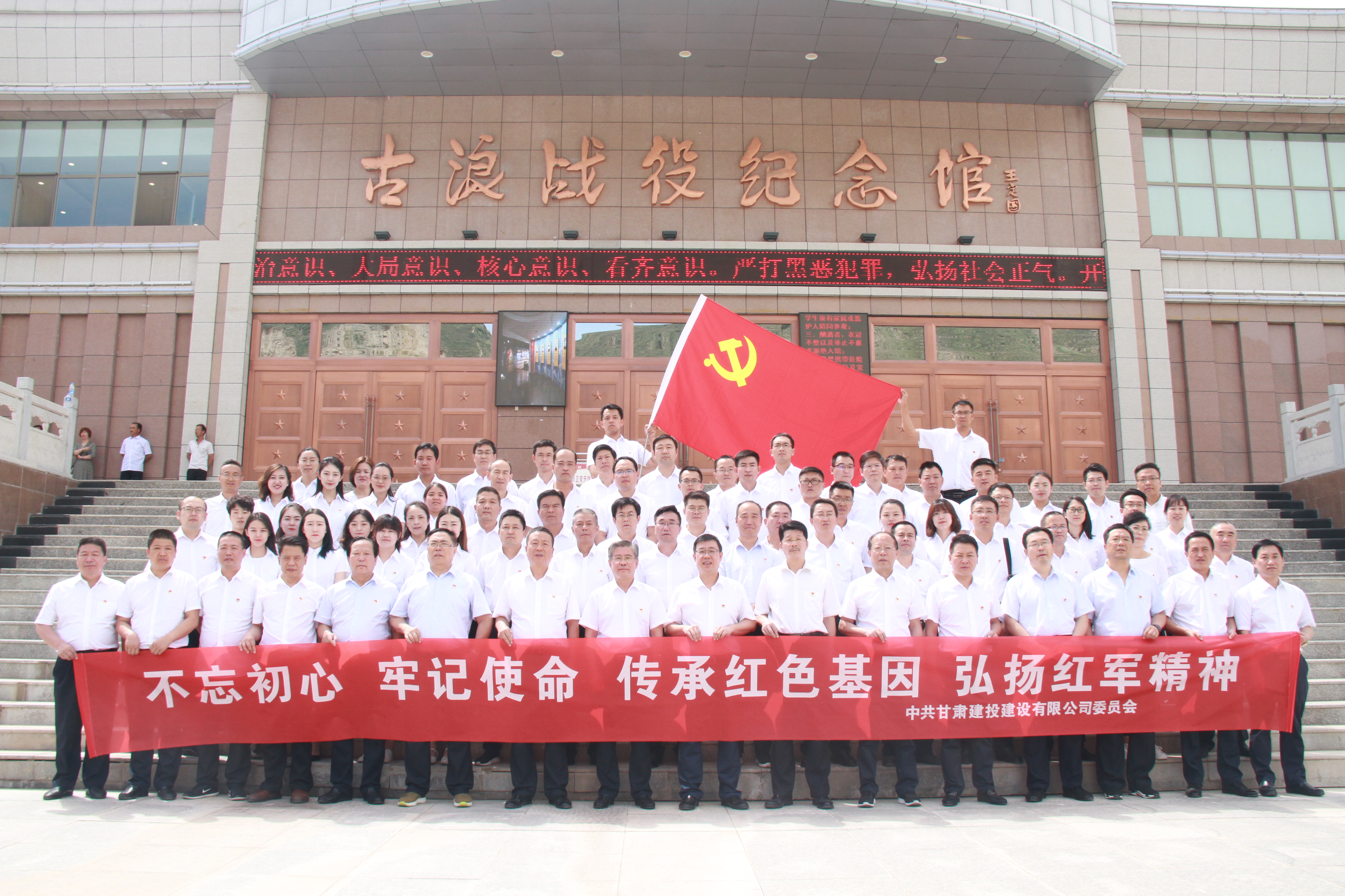為慶祝中國共產(chǎn)黨建黨98周年,7月2日,建設(shè)公司黨委開展慶?!捌摺ひ弧北碚么髸?huì)暨“不忘初心、牢記使命”主題教育推進(jìn)會(huì)。建設(shè)公司領(lǐng)導(dǎo)班子成員,基層公司處級(jí)干部,黨支部書記、黨支部副書記,先進(jìn)黨支部、先進(jìn)黨小組代表,優(yōu)秀共產(chǎn)黨員、優(yōu)秀黨務(wù)工作者,黨員示范工程、三優(yōu)項(xiàng)目代表,部分黨員代表共80余人赴武威古浪戰(zhàn)役紀(jì)念館開展了相關(guān)活動(dòng)。