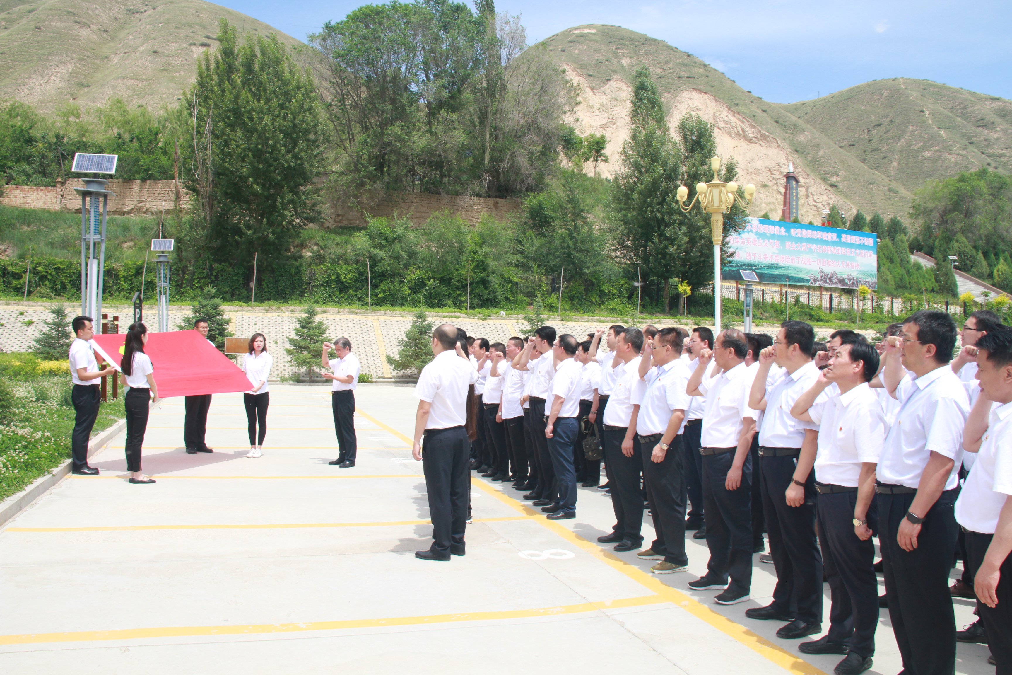 上午,全體黨員來到武威古浪戰(zhàn)役紀(jì)念館參觀學(xué)習(xí)并開展主題黨日活動(dòng),在西路軍革命烈士紀(jì)念碑前,大家跟隨講解員的講解,回顧西路軍在古浪的征戰(zhàn)歷史,學(xué)習(xí)與傳承西路軍的英雄事跡和不怕犧牲血戰(zhàn)到底的大無畏革命精神,同時(shí)向革命先烈默哀致敬并敬獻(xiàn)花籃、花圈。隨后,公司領(lǐng)導(dǎo)為新黨員佩戴黨徽,面對(duì)鮮紅的黨旗,全體黨員重溫了入黨誓詞。在參觀古浪戰(zhàn)役紀(jì)念館的過程中,大家先后觀看了展覽《壯懷千秋》、主題展覽《西風(fēng)烈·戰(zhàn)旗紅》與尾片《紅色基因代代傳》,在圖片展示、文物陳列、雕塑凸現(xiàn)、音樂場(chǎng)景、視頻資料等多種形式的綜合陳展下,全體黨員全面而深刻地體會(huì)到了紅軍西路軍當(dāng)年浴血奮戰(zhàn)的無畏精神和壯烈情懷。
